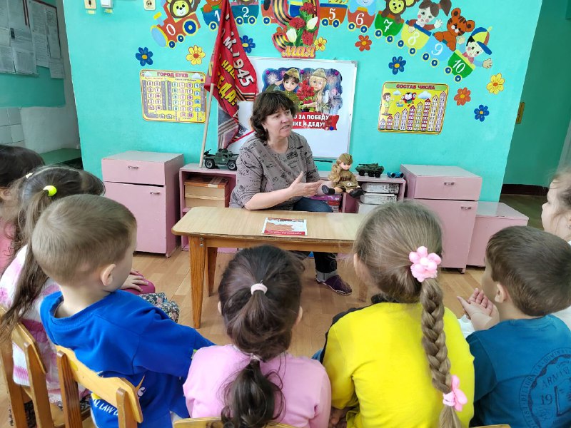 В преддверии Дня Победы с ребятами из подготовительных групп проводятся тематические интерактивные беседы «Мы помним, мы гордимся»