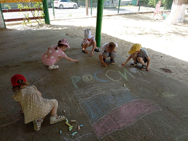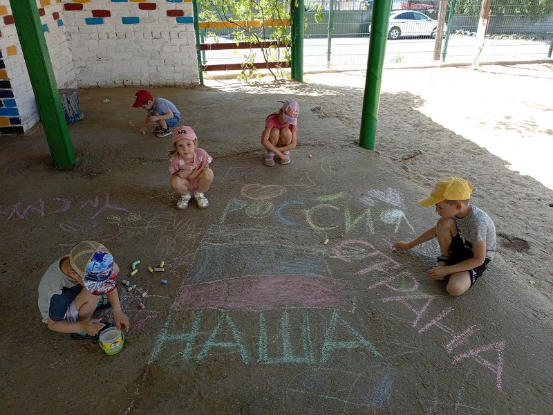 Закончилось мероприятие рисованием цветными мелками на асфальте. Юные воспитанники выразили свою любовь и уважение к своей великой стране в своем рисунке.