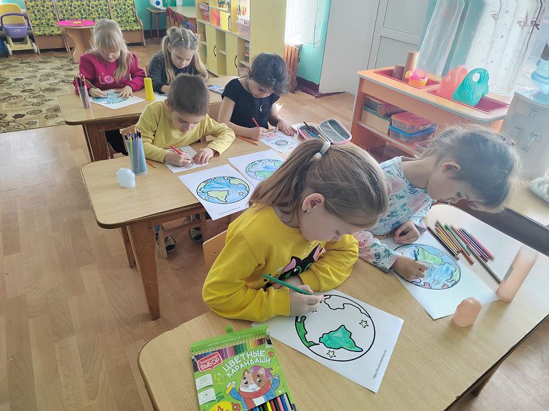 В детском саду прошла тематическая неделя, посвящённая Дню космонавтики. Воспитанники логопедической группы в течение недели знакомились с информацией о первом полете человека в космос и о космосе вообще.