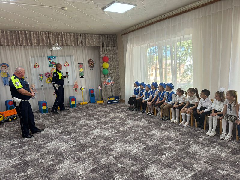 Сегодня наш детский сад посетили ДПС ОГИБДД ОМВД России по Тацинскому району старший лейтенант полиции Марышев В.И. и капитан полиции Брежнев А.В.