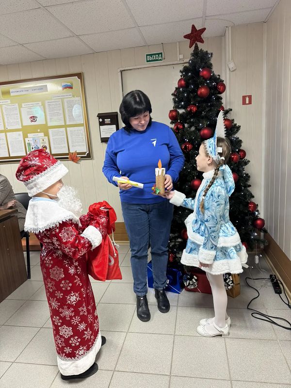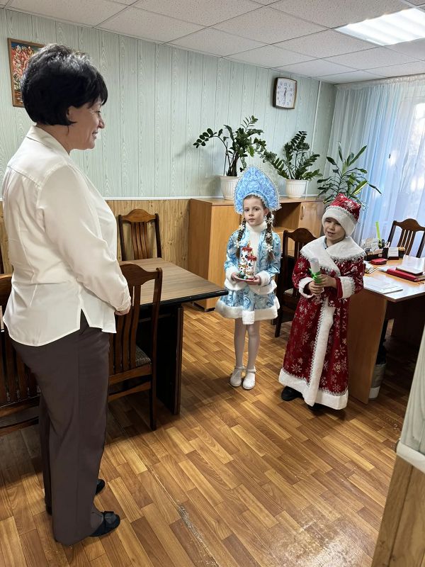 Так они побывали в гостях у Заведующего Отделом образования Администрации Тацинского района Ирины Сергеевны Харламовой, поздравили председателя местного отделения "Движения Первых" Наумик Светлану Александровну, заглянули с наилучшими пожеланиями в кабинет к ведущему специалисту Отдела образования Марине Александровне Шукшиной, директору МБУ ИМЦ Елене Алексеевне Поповой. Взрослые были рады принять поздравления от Деда Мороза и Снегурочки и с удовольствием угостили их сладостями!