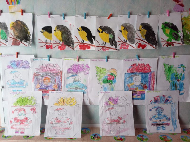 Они с удовольствием слушали рассказы о том, как Дед Мороз помогает им и исполняет их желания. Для Деда Мороза дети тоже решили подготовить подарки. Малыши приготовили рисунки «С Днём рождения - Дед Мороз!».